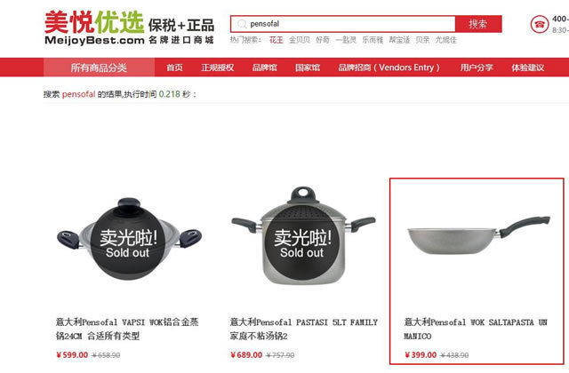 再直接搜百度,出来个美悦优选,基本是售罄的状态,其中单单一个煎锅就要近400!