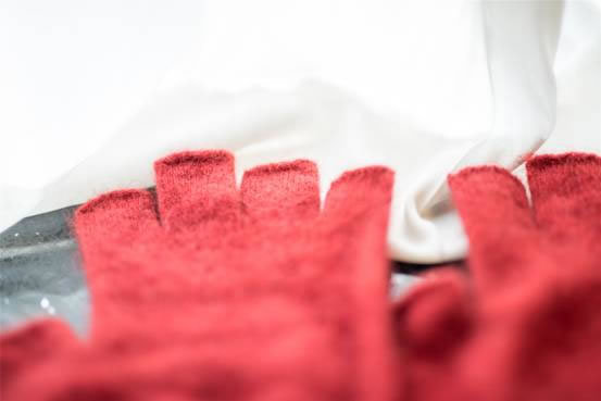 新西兰的美利奴羊毛是众所周知的好。她拿起这双手套,很轻,摸上去很柔软舒服,毛质很纤细,手感很丰满,好像触摸着一只刚出生不久长着绒绒毛的小鸟,一点都不扎人。