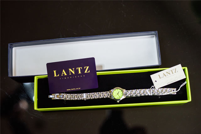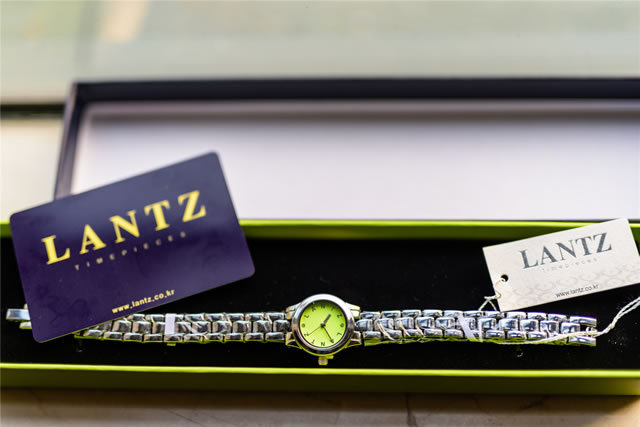 查了查,原来她戴的是韩国LANTZ朗时手表,这个品牌创立时间不长,但是因为具有潮流的色彩和多变的风格,不仅成为韩国明星的心头好,而且已经畅销日本、泰国、美国、俄罗斯等15个国家。这个牌子似乎在中国还没有实体店,只好在网上搜罗,还真有一家进口电商有货,于是买了一款LA1190型号的女石英表。到货很快,蓝紫色外包装也超级有逼格,正中间有LANTZ的LOGO。