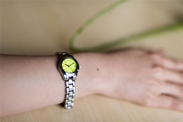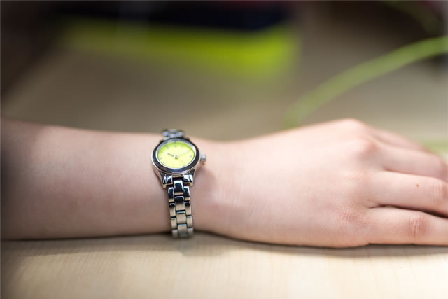 我最喜欢的还是表盘。整个表盘简洁大气,是最经典的手表表盘形态,不仅时尚,也具有韩国的甜美可爱,时尚奢华完美融合。碳钢表壳质地透明,不会因水雾、污浊影响读表。表底颜色类似芥末,不过不会呛口,视觉感还是比较温和,令人遐想。